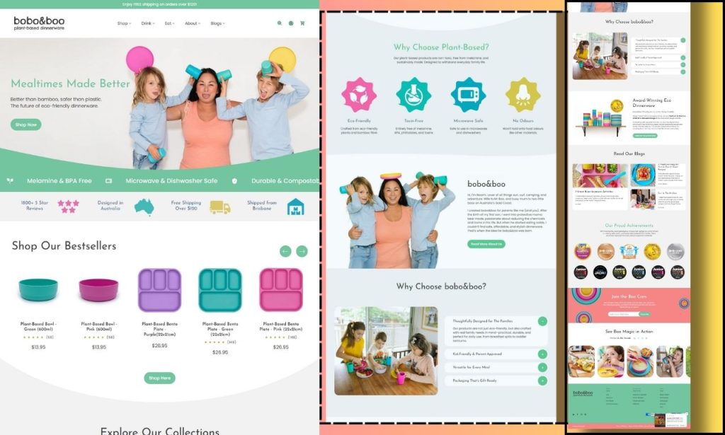 “I designed and developed the Bobo & Boo e-commerce website. The site features a clean, modern and eco-friendly design, product catalogues, shopping cart & checkout, responsive layout, and a seamless user experience tailored for a sustainable children’s dinnerware brand.”
