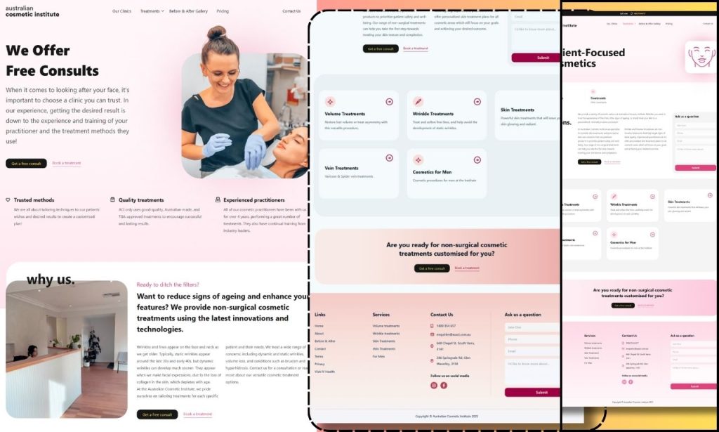 “I designed and developed the Australian Cosmetic Institute website using WordPress, Elementor, and WooCommerce. The project features a clean, modern, and responsive design tailored for a premium cosmetic clinic. It includes detailed treatment pages, before & after galleries, pricing sections, and an integrated booking and contact system — all focused on providing a smooth and professional user experience.”
